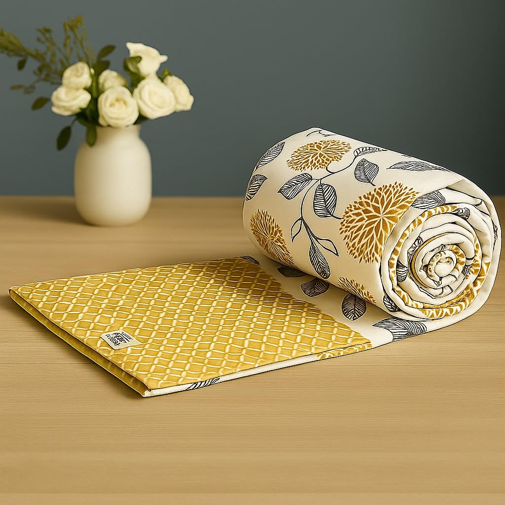 Beat the heat with the Story@Home Cotton Dohar 150GSM, designed specifically for India’s tropical climate. This lightweight reversible comforter combines traditional dohar craftsmanship with modern convenience, featuring elegant olive green and white floral patterns that complement any bedroom décor. The 100% cotton construction ensures maximum breathability while the 150GSM weight provides just the right warmth without overheating.